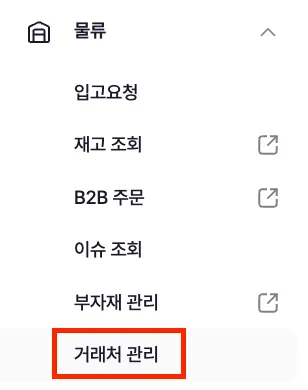 - ‘물류>거래처 관리’에 등록된 거래처만 선택 가능하니, 사전에 등록해 주셔야 합니다.