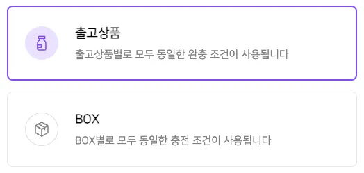 단위를 ‘BOX’로 선택하시면, 포장시 박스의 여유공간을 채우도록 신청 하실 수 있습니다.