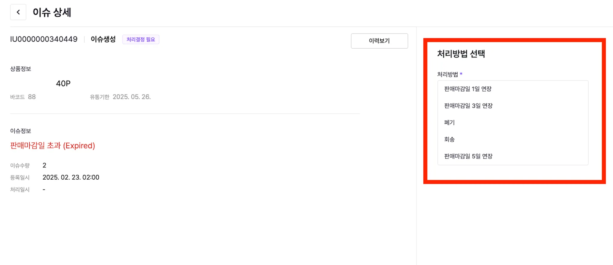 1일 연장 / 3일 연장 / 5일 연장 / 회송 / 폐기 등으로 이제 직접 지정하실 수 있어요.