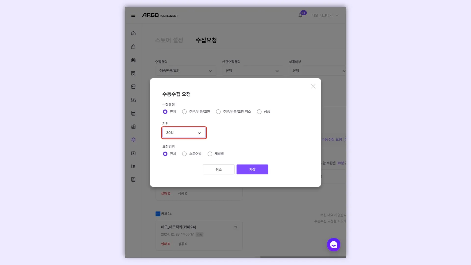 유형/기간/요청범위 선택 후 저장하시면 3~5분 정도 소요돼요!
