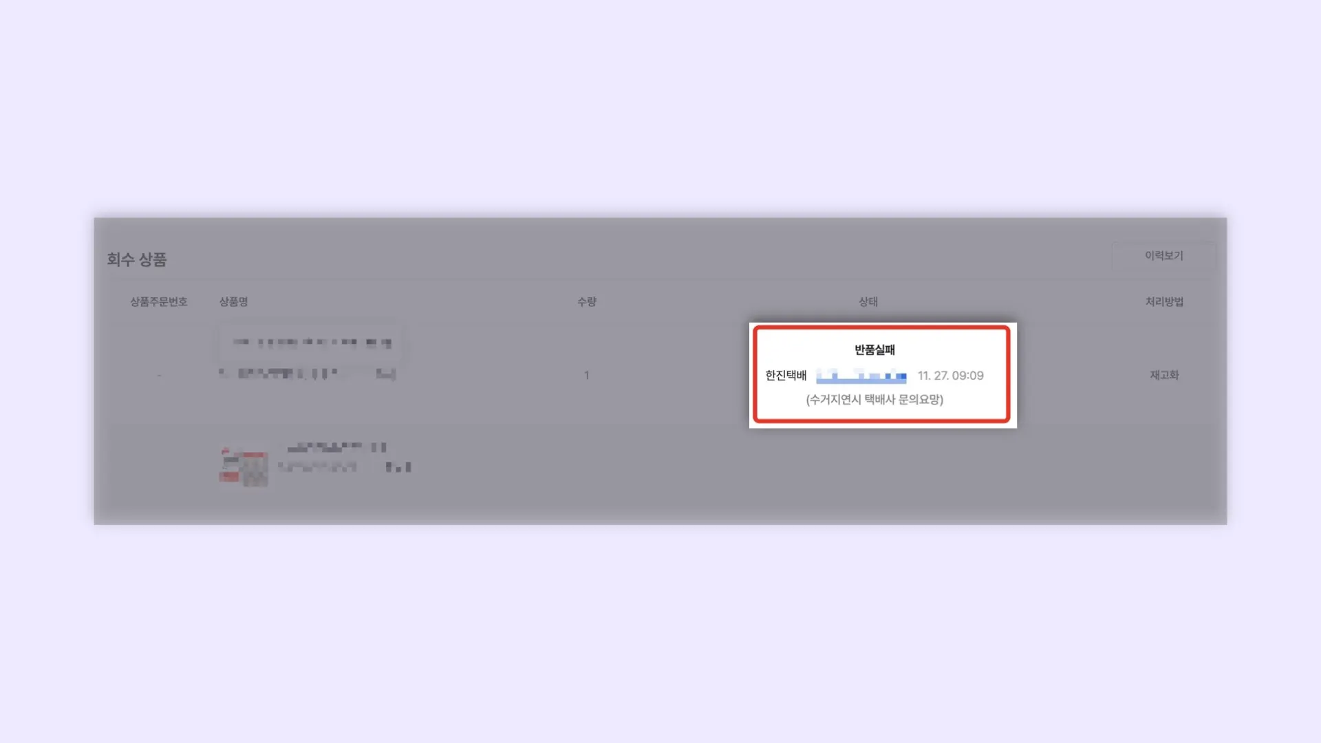 이 과정이 지속되면 ‘장기간 미집하'로 반품 실패가 되니 유의해주세요.