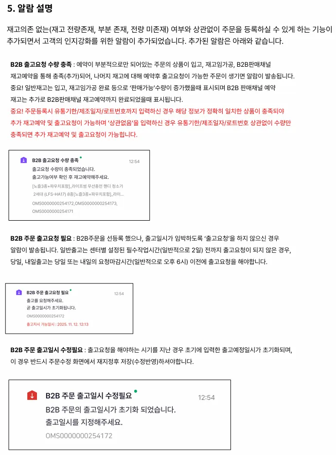 2025.11.20 부로 B2B주문 등록 기능 업데이트