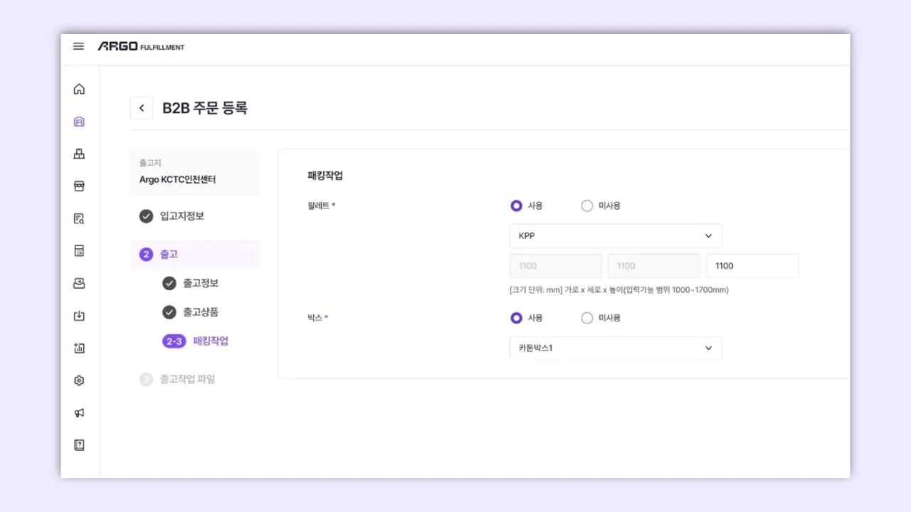 B2B 출고시 ‘팔레트’ 및 ‘박스’ 사용이 필요한 경우 기재해주세요.