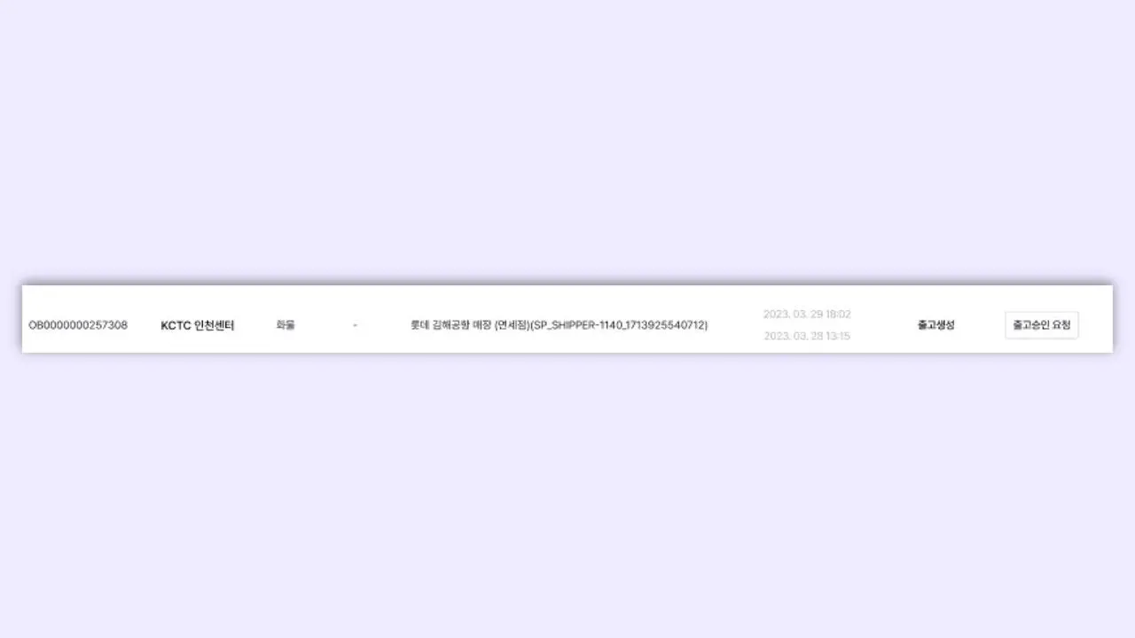 출고유형은 대형 화물(차량이용) 배송사 2가지로 나뉨 (펼쳐보기)