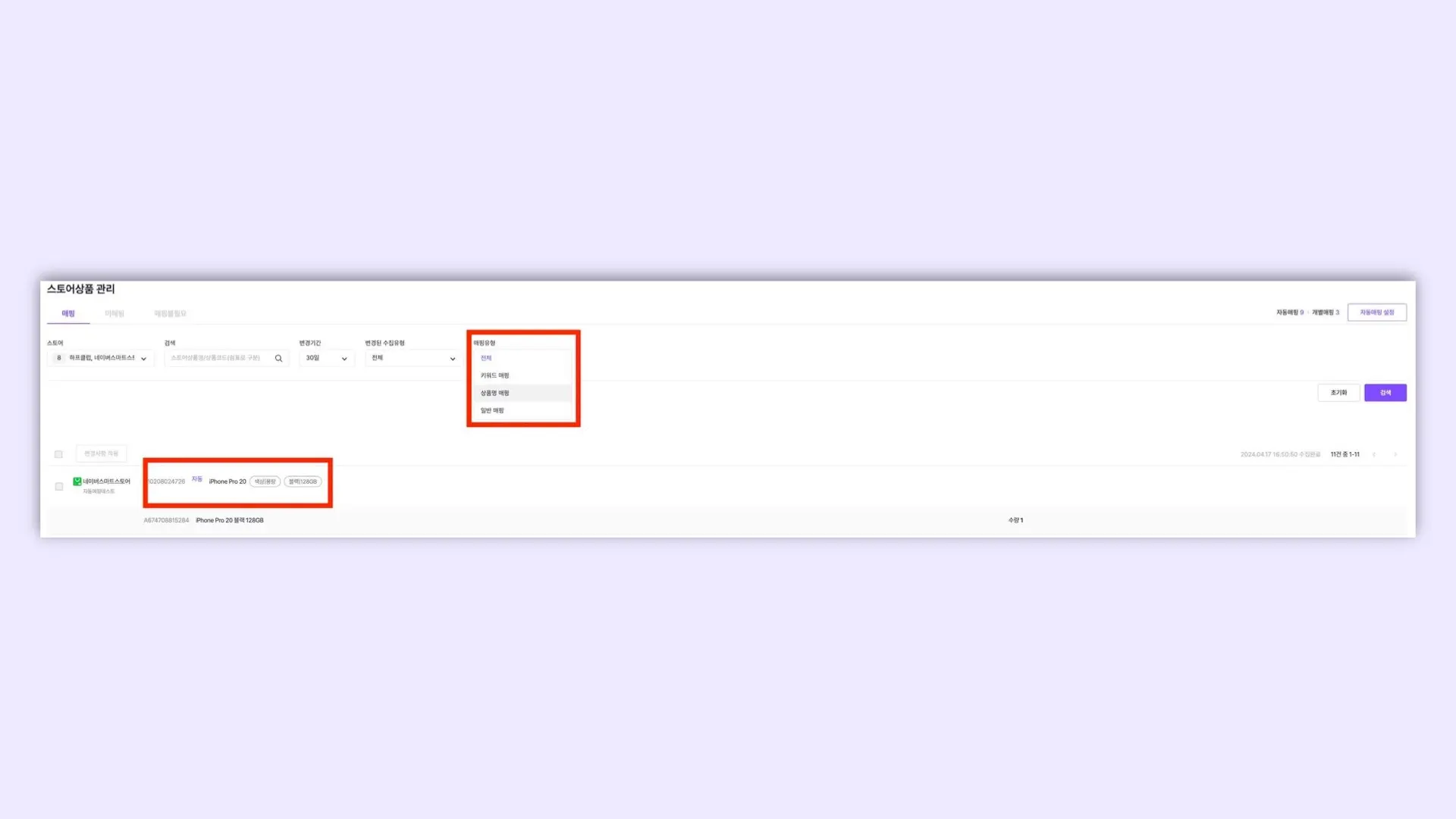 아래 예시에서 iPhone Pro 20 블랙 128GB 의 상품명이 스토어 상품명+옵션명, 출고 상품명에서 정확히 일치하여 자동 매핑에 성공하였어요.