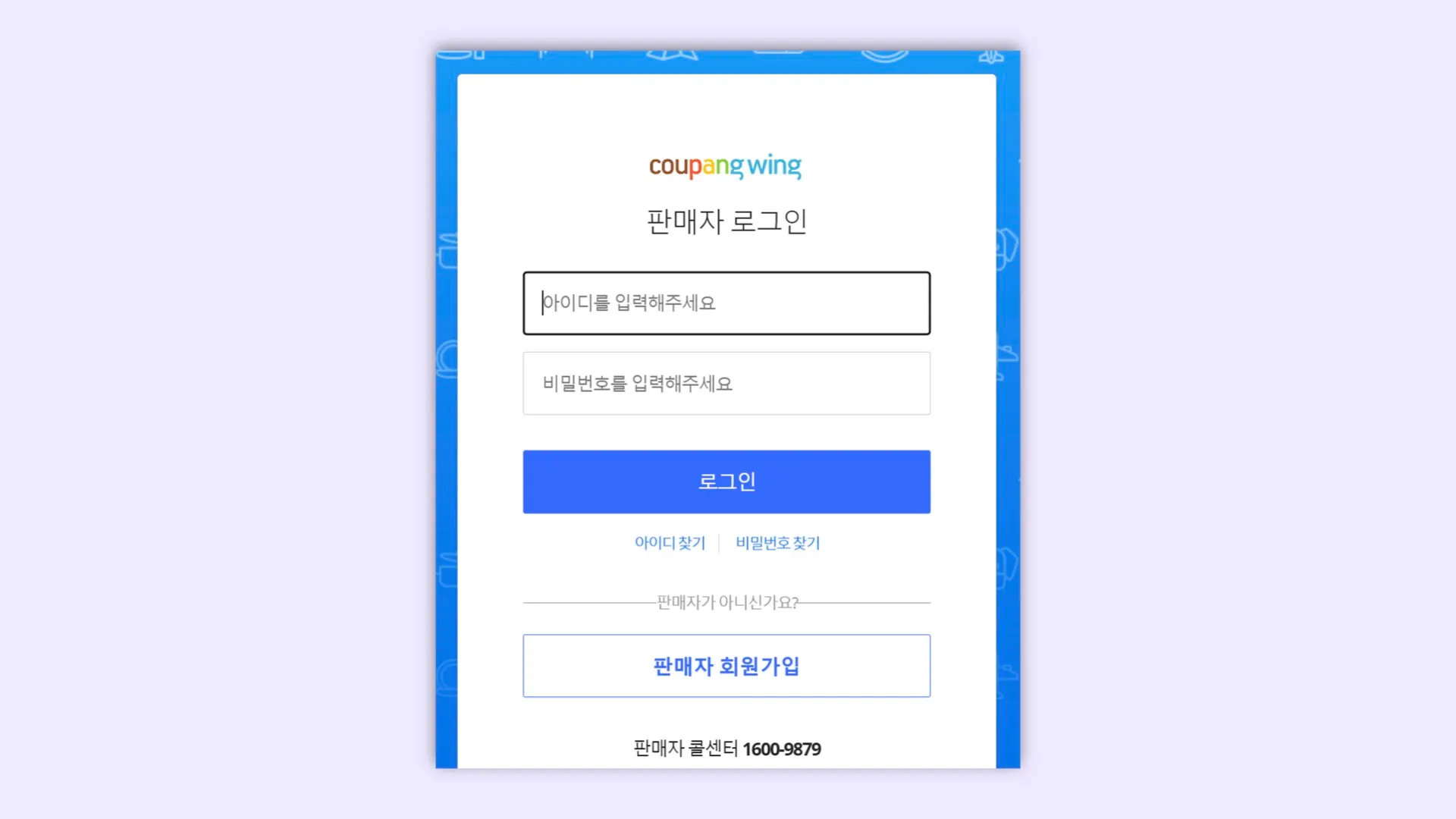 먼저 쿠팡 판매자 페이지에 로그인 해주세요!