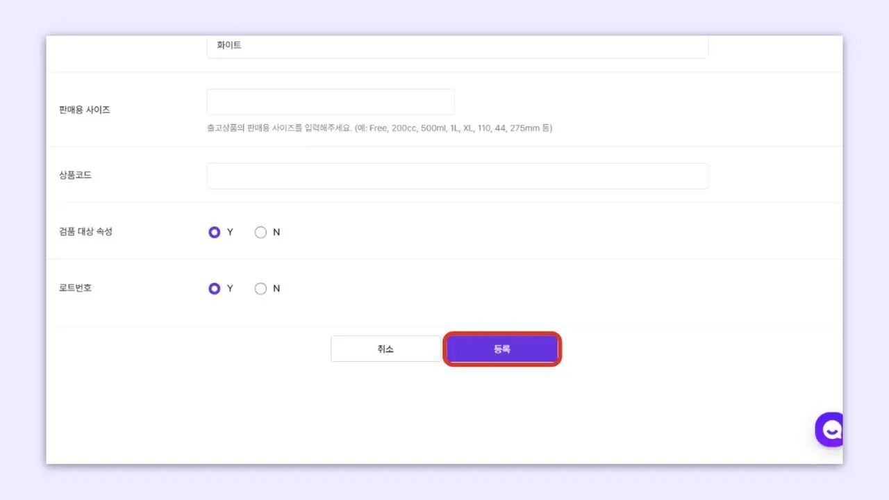 화장품 등 로트번호가 중요한 경우는 Yes 선택 후 기재해주세요.