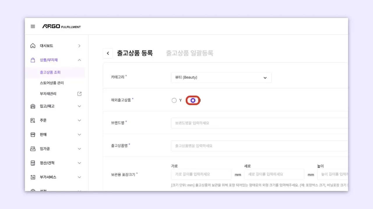 국내에서만 판매하는 상품이라면 기본적으로 No 를 선택해주세요.