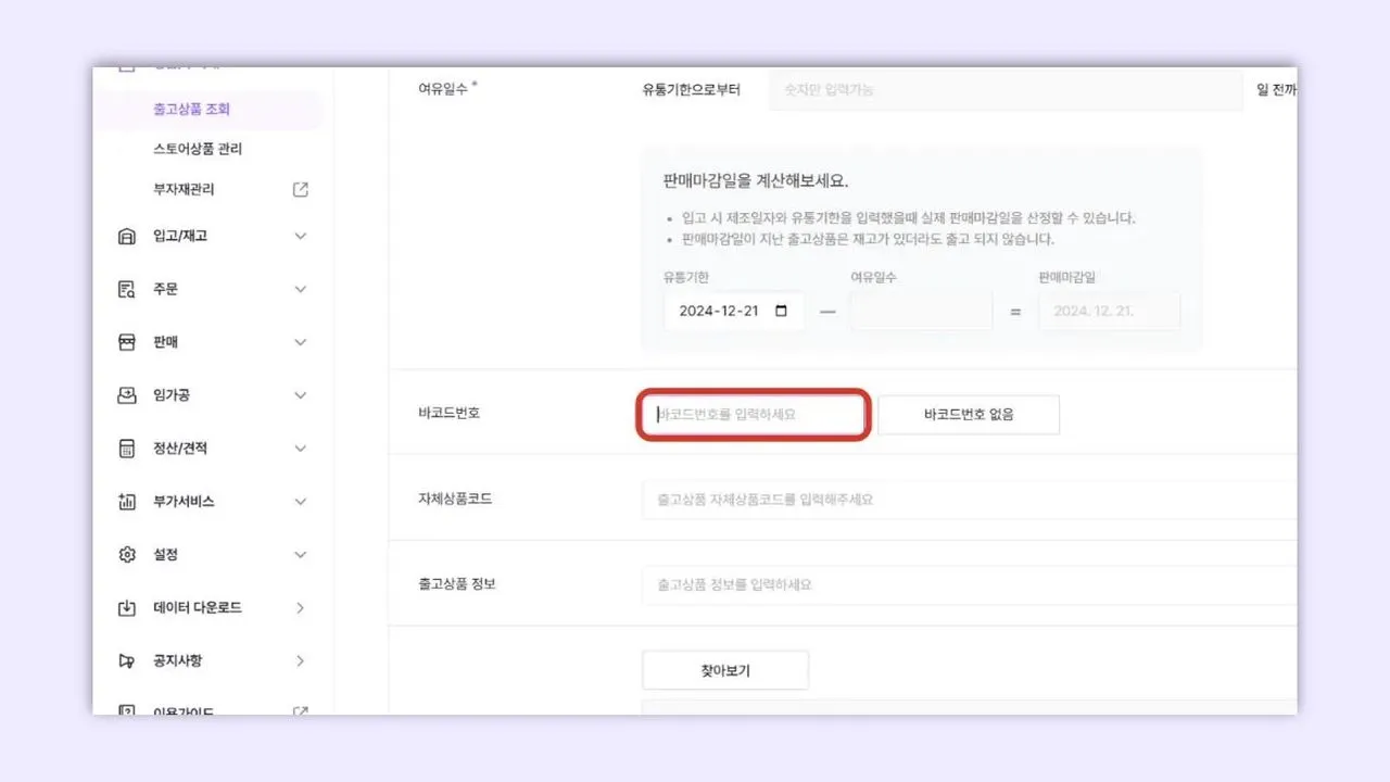 제품 겉면에 부착한 바코드의 숫자와 일치하도록 기재해주세요.