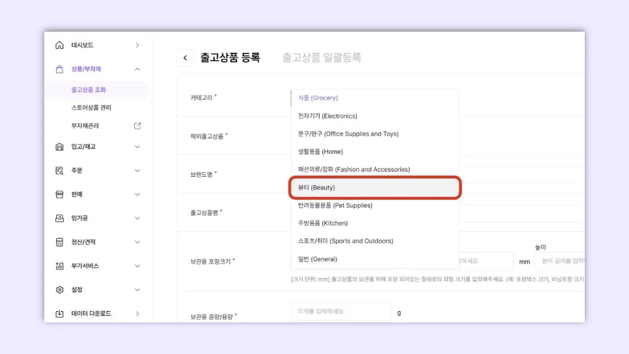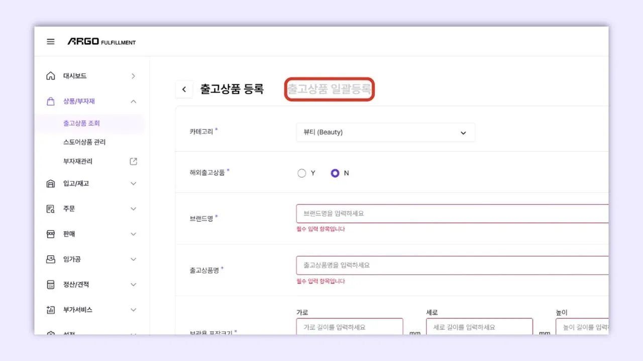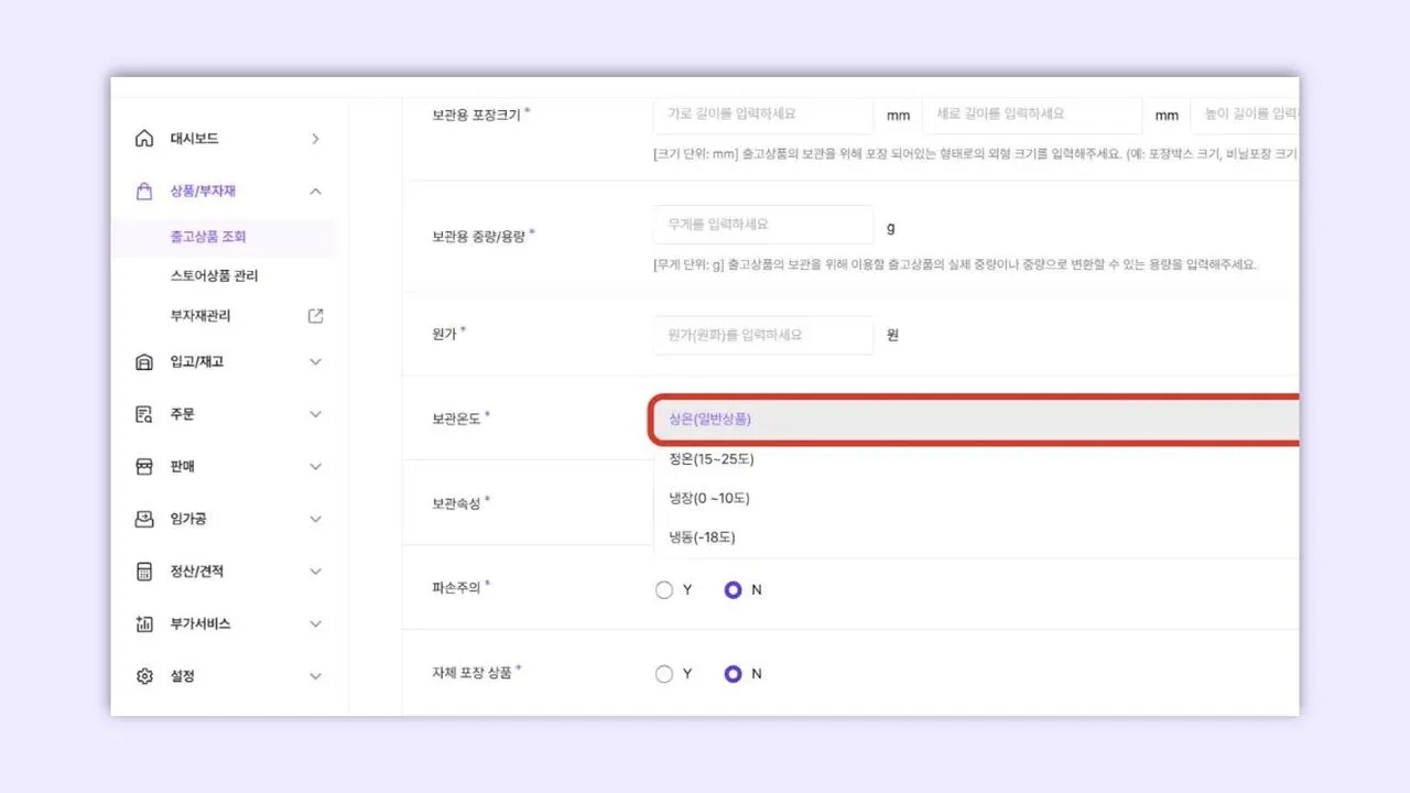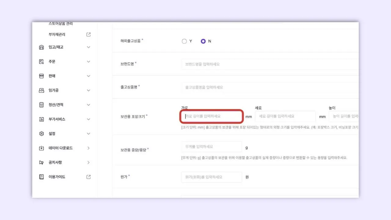 입고 검수시 센터에서 일치하지 않으면 수정하므로 정확히 작성해야 해요.
