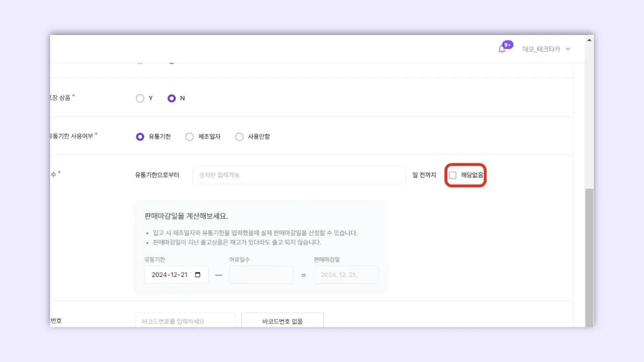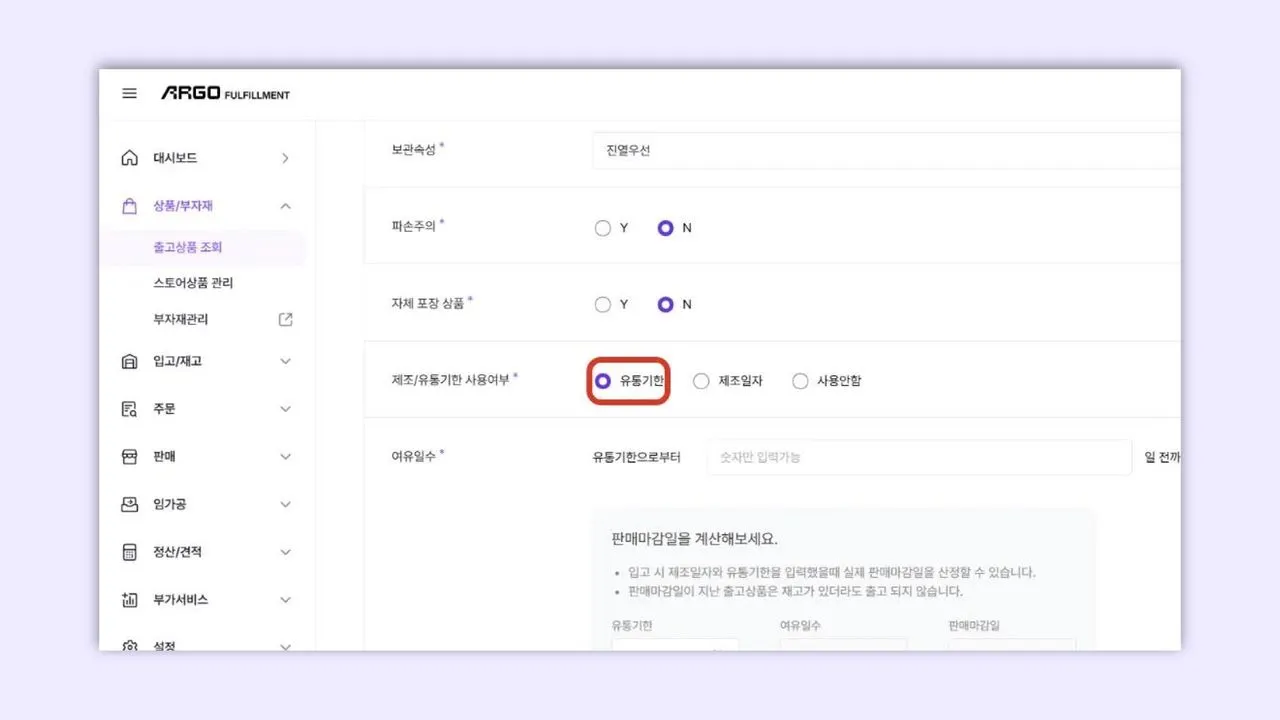 유통기한/제조일자 중 어떤 기준을 사용하는지 체크해 주세요.