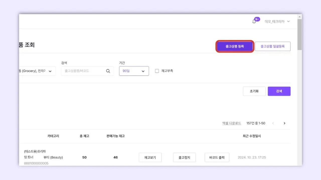 스큐 등록 페이지에서 간단히 수량을 조회할 수 있어요.