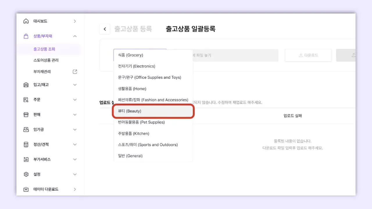 다운받은 엑셀파일의 양식대로 기재 후 저장 - 업로드 하시면 일괄등록 완료예요.