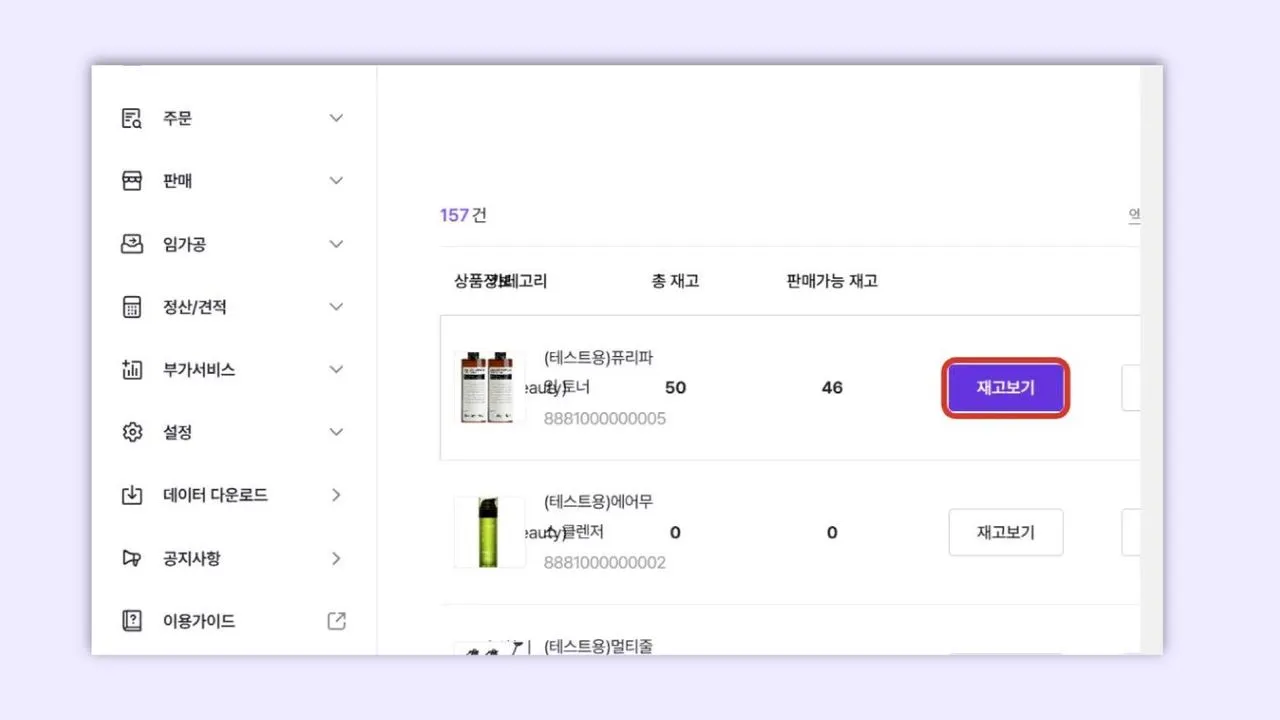 판매가능 재고는 출고예약 등이 잡히지 않고 조회 시점 기준 새롭게 판매가 가능한 모든 재고량을 뜻해요.