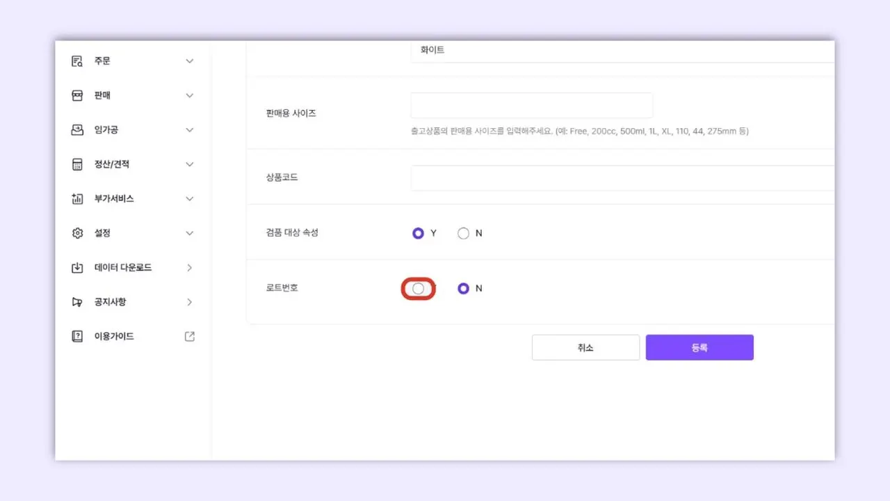 바코드가 없어 입고시 임가공이 필요하다면, 임가공 하고자 하는 숫자로 미리 등록해주시면 되세요.