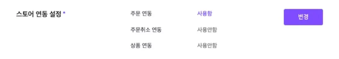 스토어 연동 설정의 주문 연동 ‘사용함’ 필수