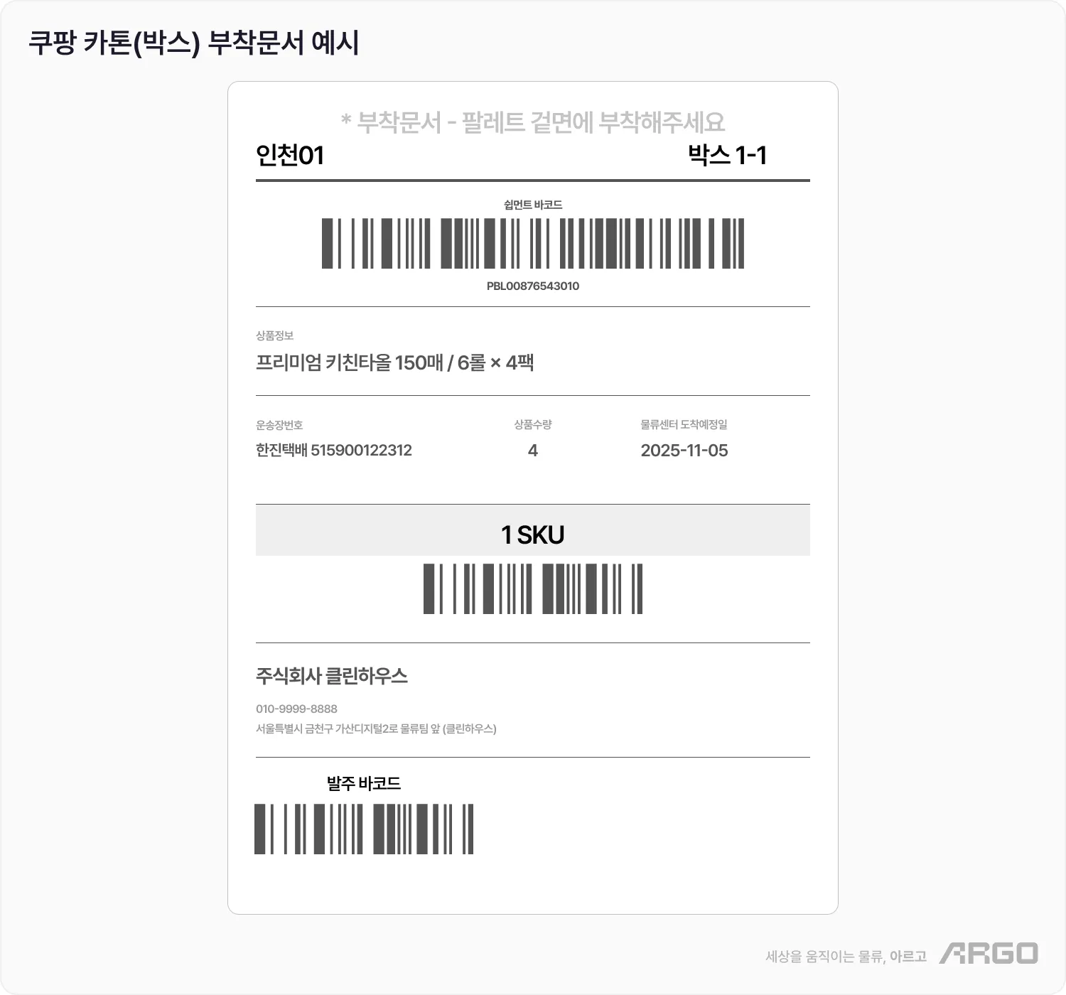 고객께서 업로드하신 쿠팡 카톤(박스) 부착문서를 반드시 다운로드하여 출력하세요.