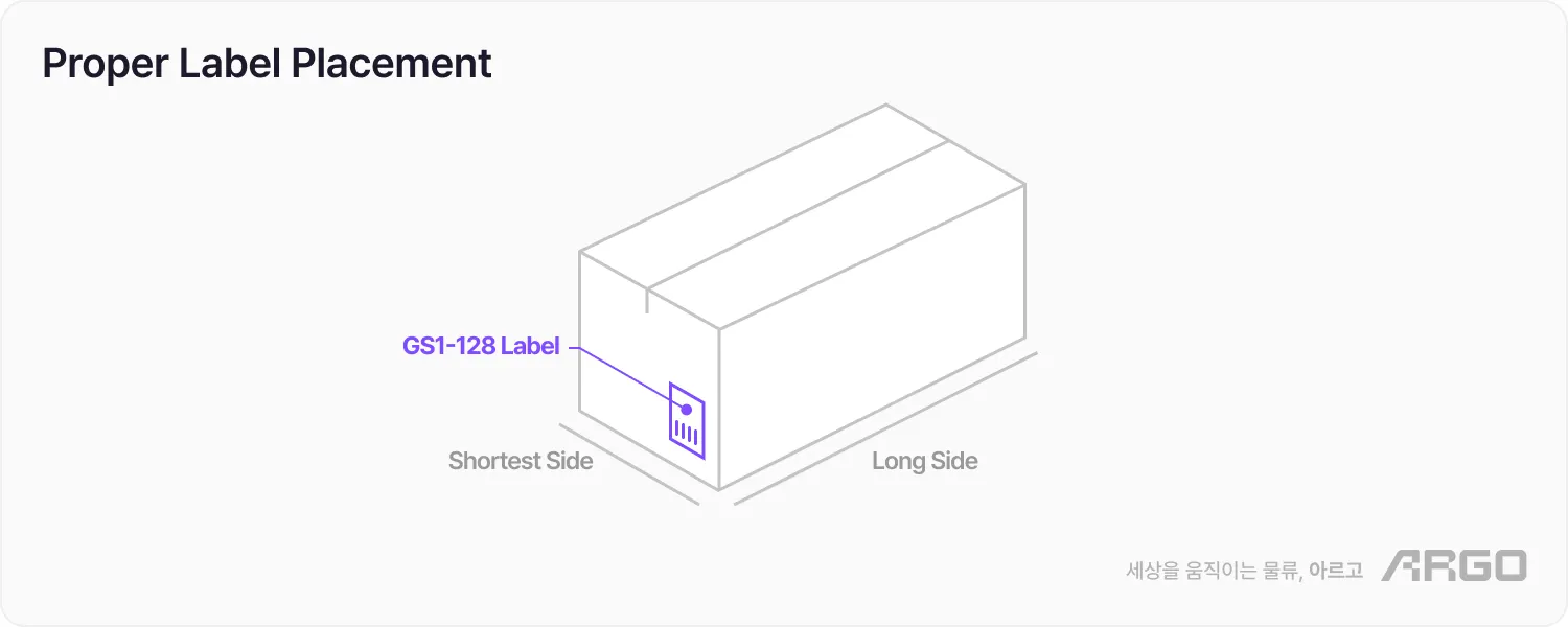 아래 가이드라인을 확인 후 GS1-128 라벨을 부착해주세요.