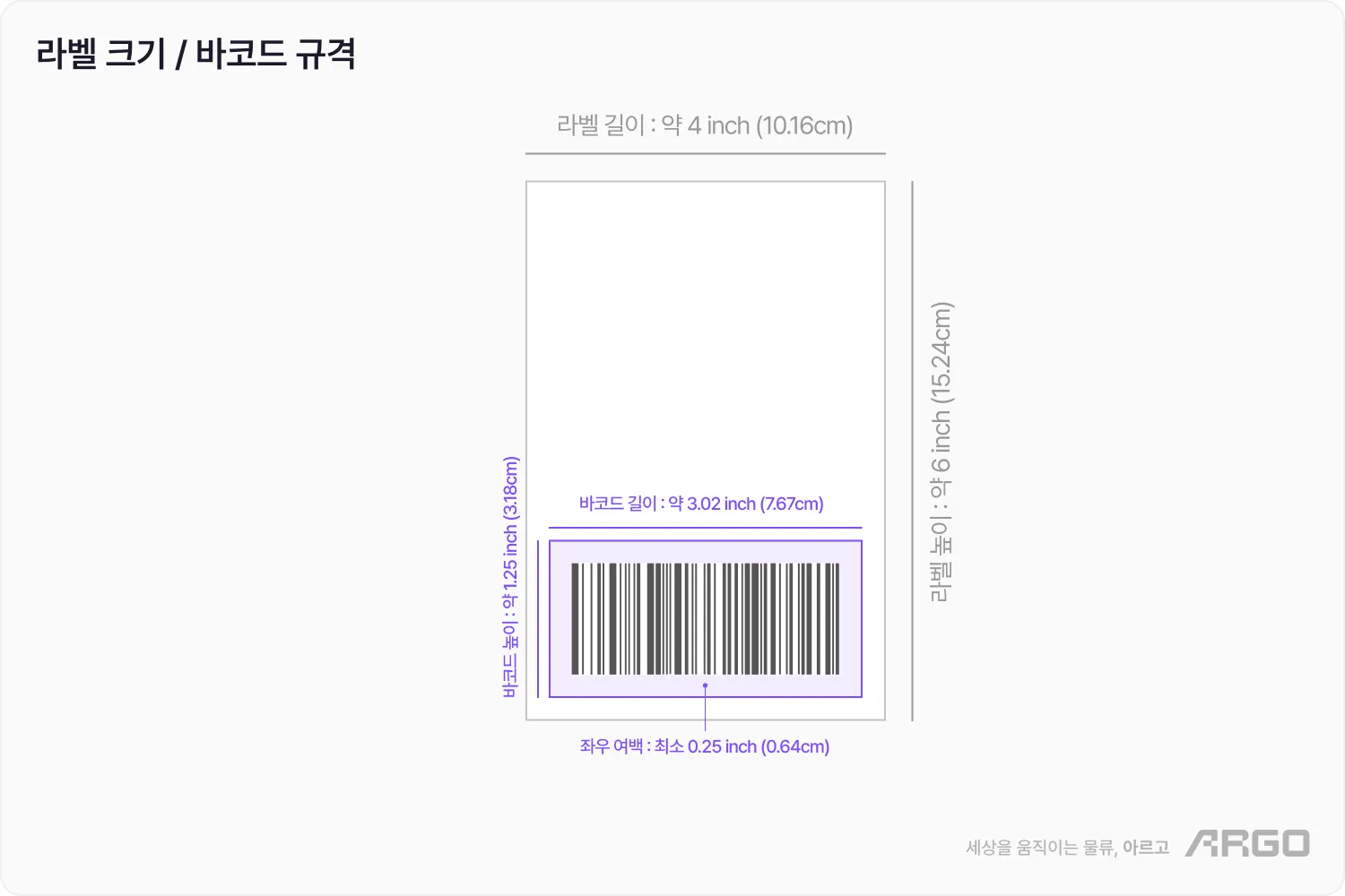단, 테이프나 박스 이음새를 피하고, 바코드 주변에 최소 1.25인치 여유 공간을 확보하세요.