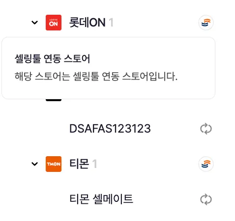 스토어 설정페이지에서는 셀메이트를 통해 수집하는 스토어를 셀메이트 로고와 함께 확인하실 수 있습니다.