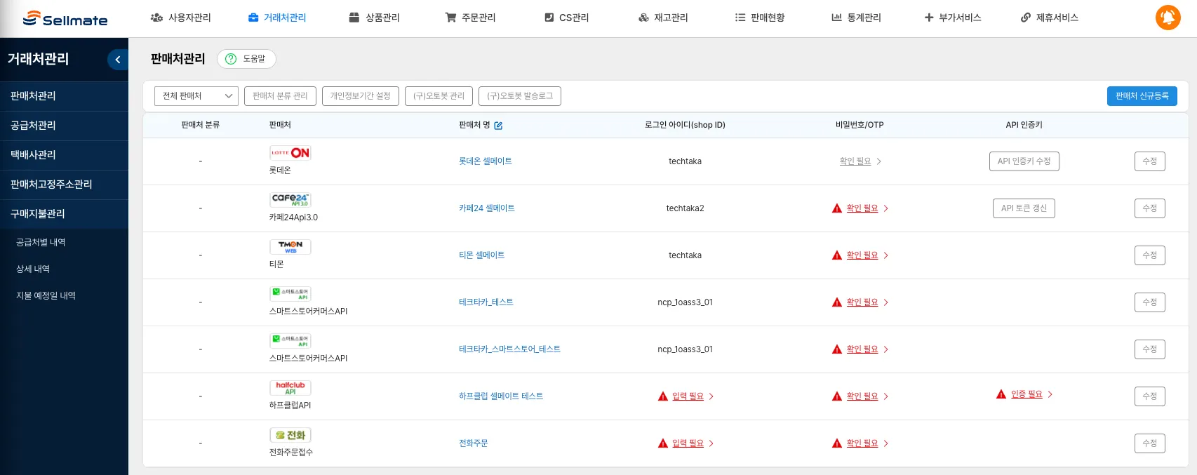 셀메이트 > 거래처관리 > 판매처관리에서 해당 스토어들을 등록해주세요.
