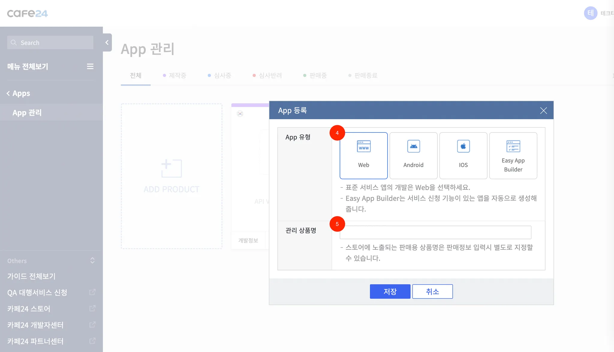 WEB 클릭 후 관리 상품명 입력합니다.