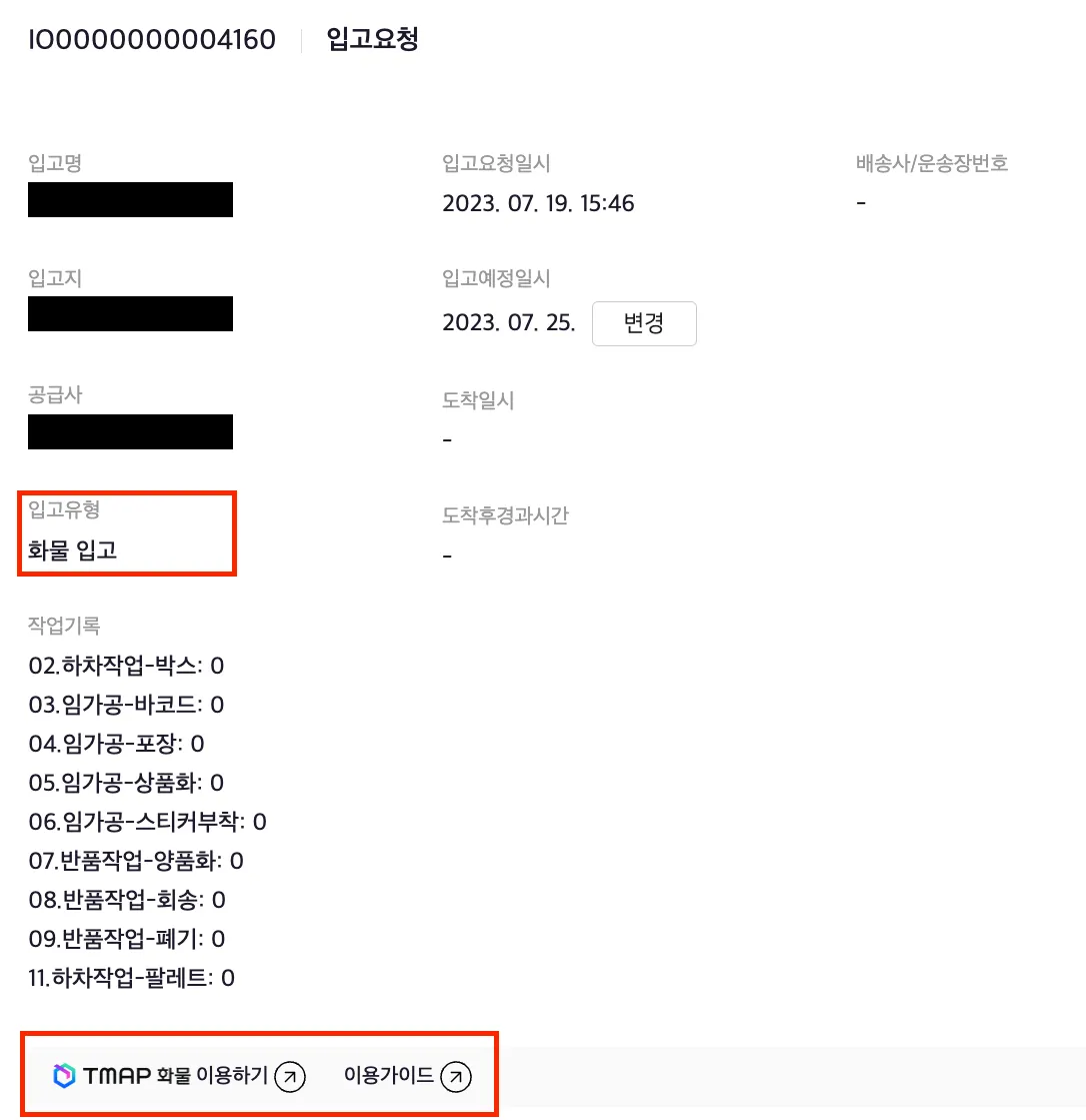 안내드린 입/출고 가이드와 다를 경우, 일정 지연 및 작업 비용이 추가될 수 있습니다.