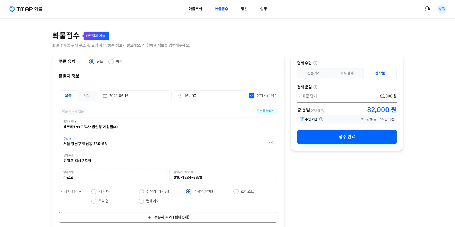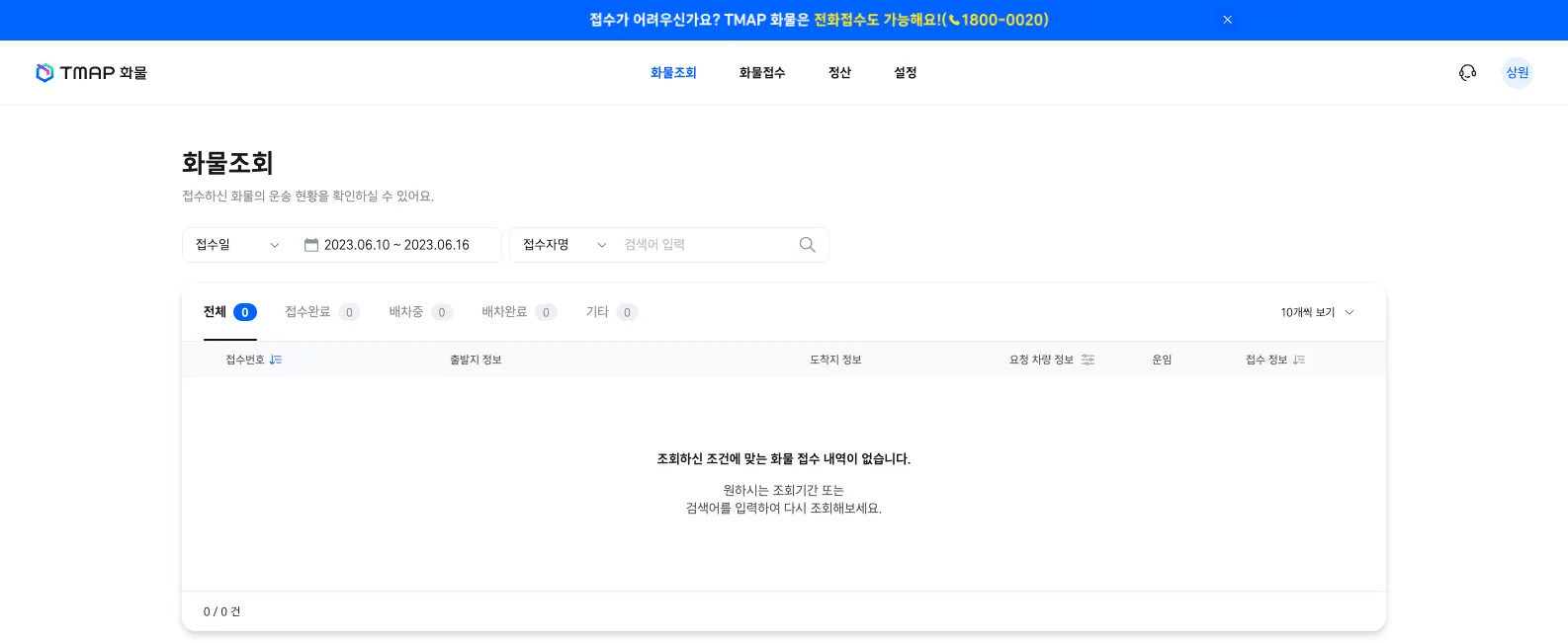 STEP 3. 시스템 내 티맵화물 배차 신청방법