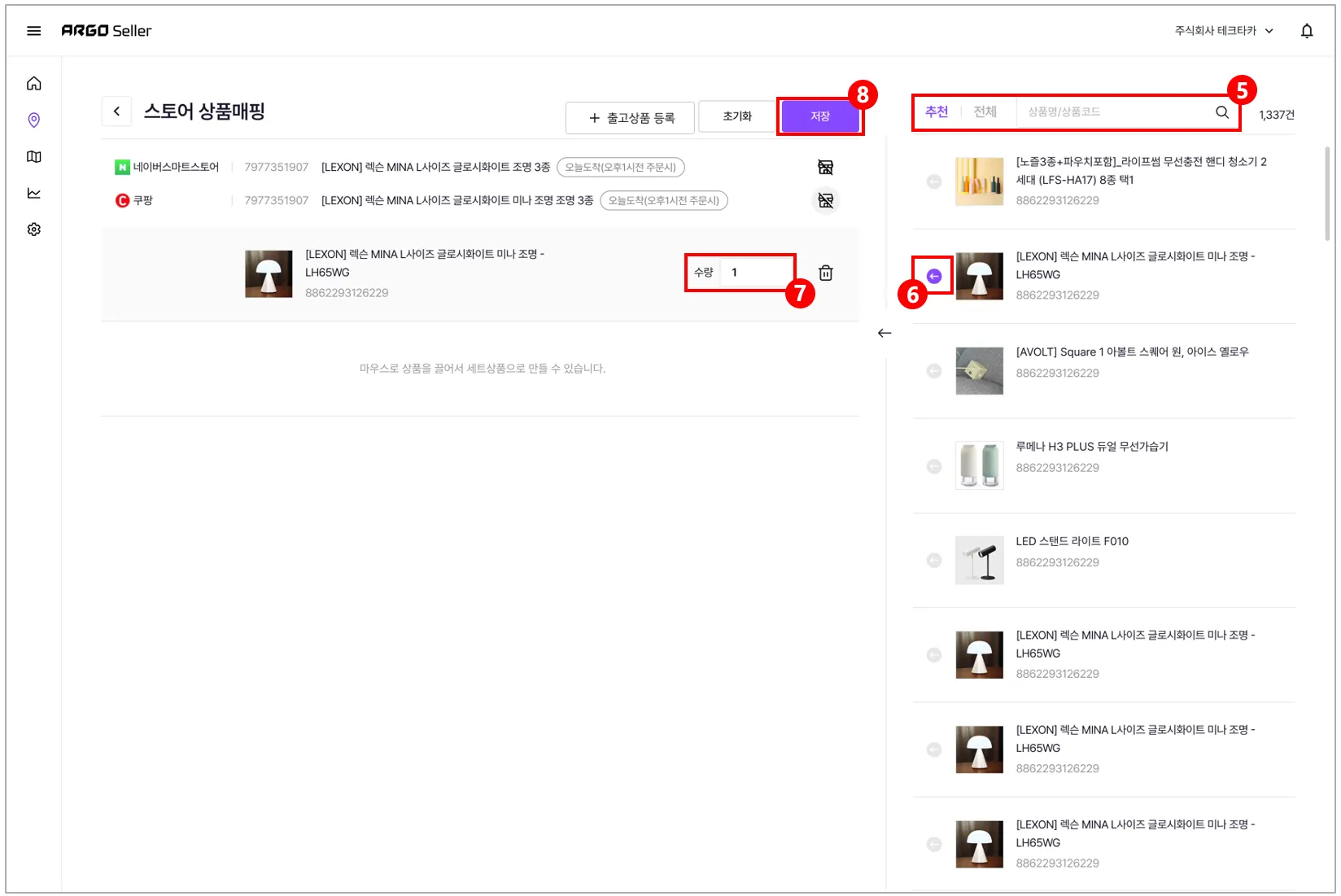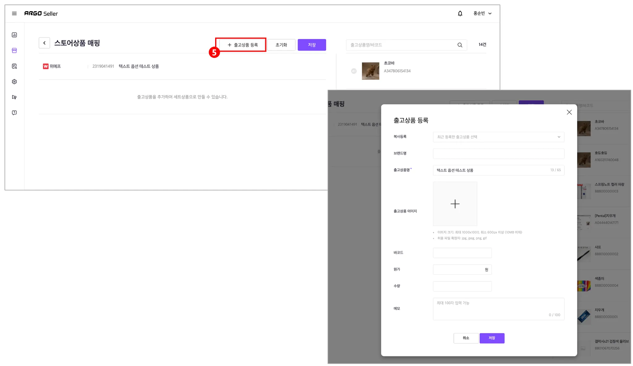 예시) 마스크 상품 2개가 1개의 스토어 상품에 매핑 되어야 한다면, 수량을 2개로 입력