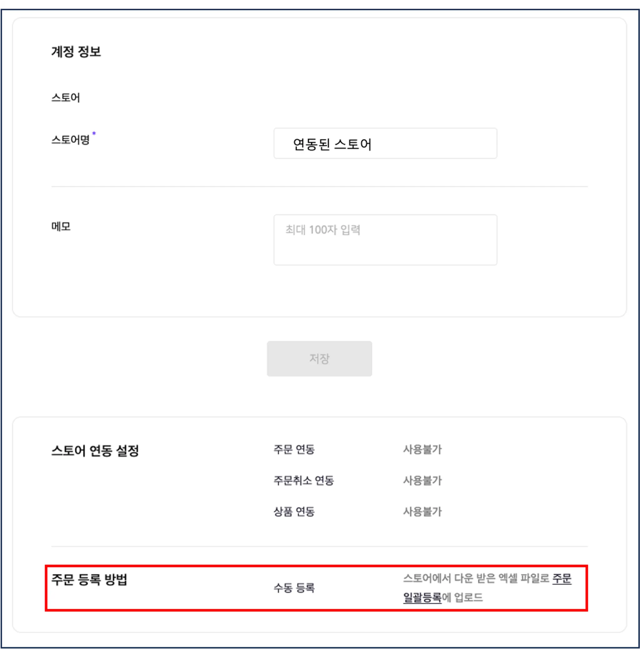 수동 등록 지원 스토어는 자동으로 주문/상품 수집이 되지 않습니다.